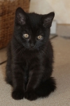 Kalle heißt eigentlich Karl-Heinz und er ist ein schwarzer Kater. Noch ist er recht winzig, obwohl er schon einige Wochen alt ist. Kalle hat mich also ganz schön argwöhnisch beäugt und als ich mich auf den Fußboden legte und die Kamera in seine Richtung hielt, nun ja, das war ihm nicht geheuer.